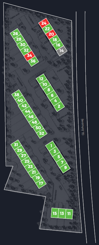 Indkørslen til rækkehusene er fra Gl. Århusvej, hvor kommunen netop har afsluttet fartnedsænkning på strækningen foran boligerne med beplantede helleanlæg, hvilket i sig selv har skabt en lille ny bydel.